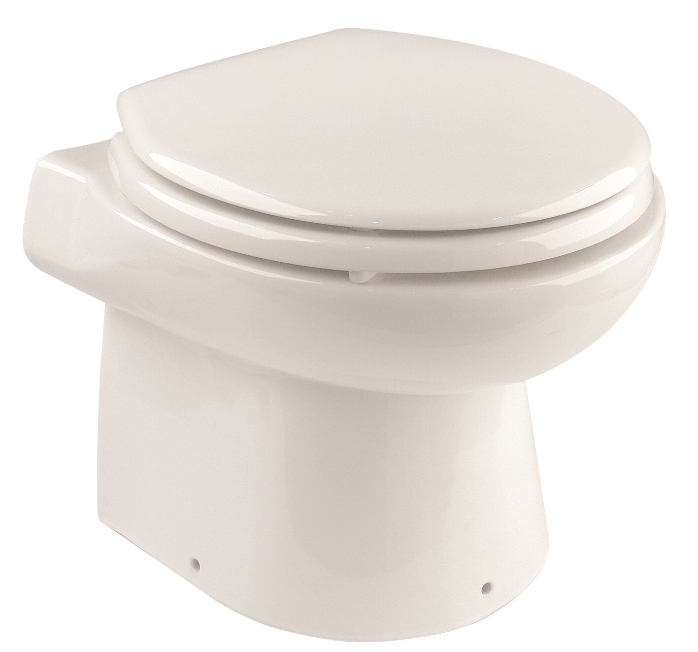 This compact and comfortable electric marine toilet is supplied including a powerful macerator and control panel. This is one of the smallest and lightest electric toilets on the market. A high-quality solid floor standing model with a porcelain bowl and comfortable seat and lid.